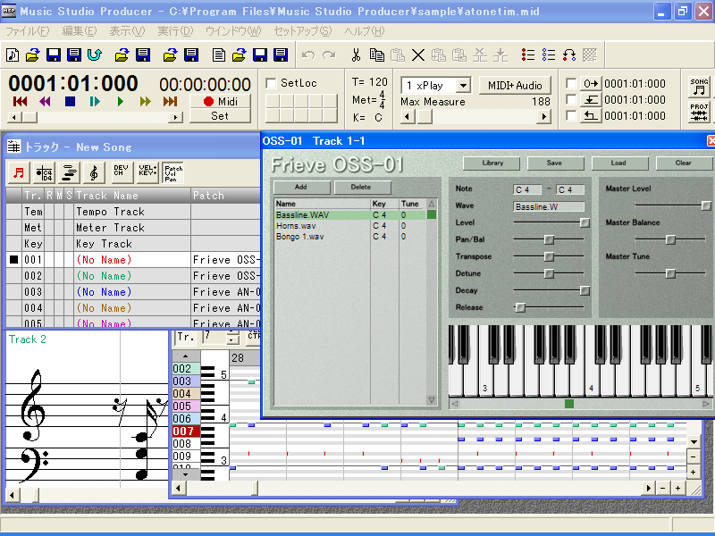 編集ウィンドウが用意され、作曲、編 曲、マルチトラックレコーディング、